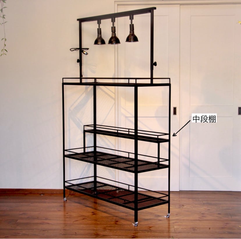 こちらのタイプは3段植物棚にオプションの中段棚を中段に取り付けております。