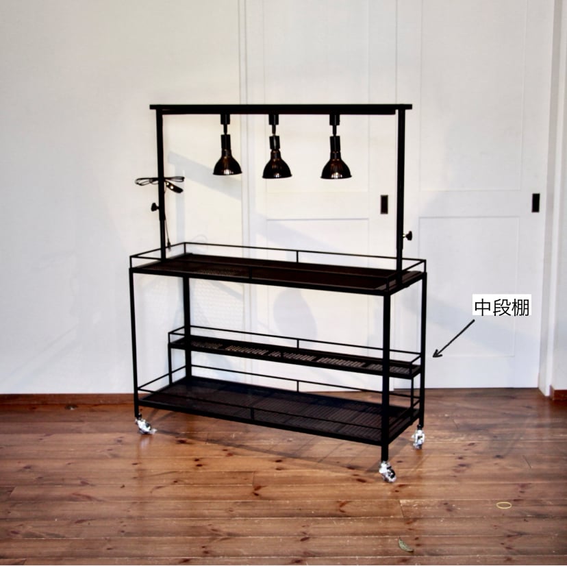 こちらのタイプは2段植物棚にオプションの中段棚を取り付けております。