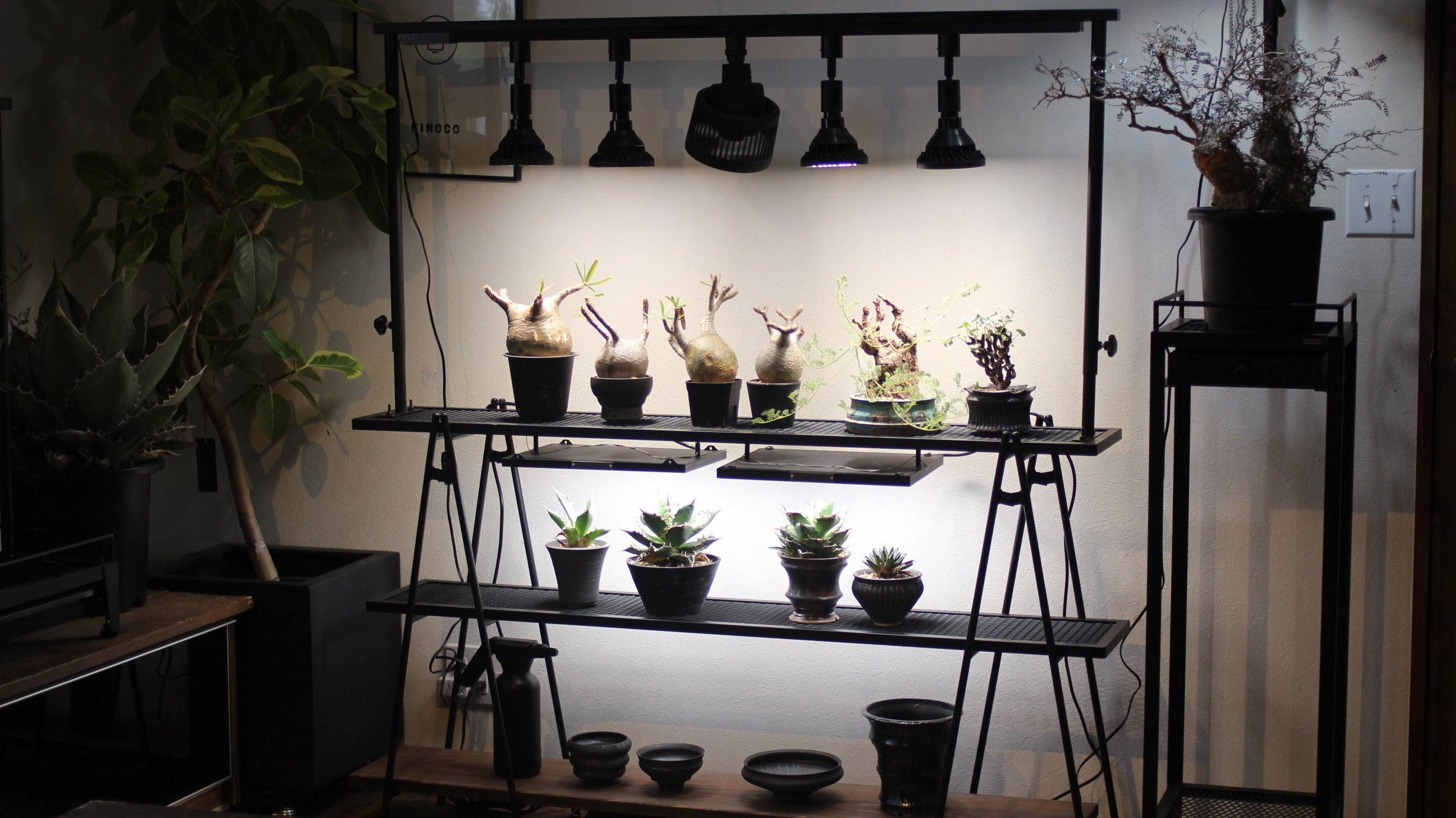 育成ライトや送風機をスマートに設置できるアーチ型の育成スタンド。